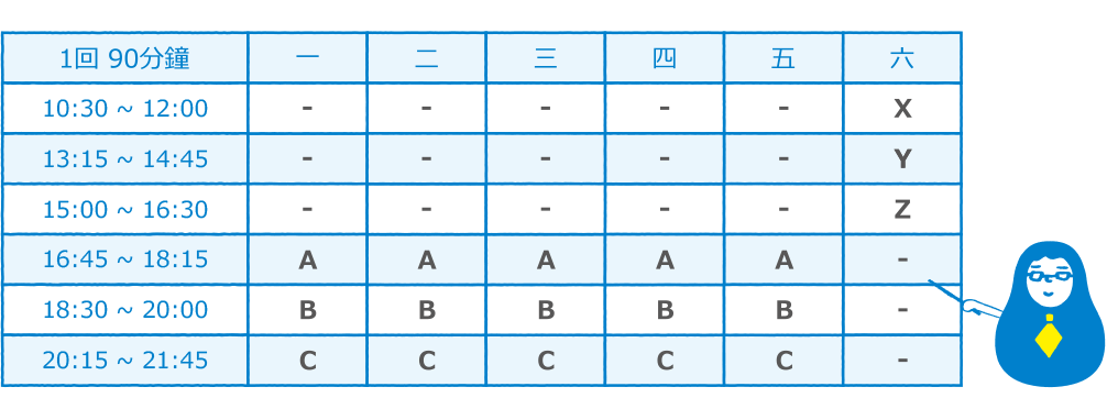 根據個別需求量身訂做上課內容,在實際體驗完整的90分鐘課程後,你一定能感受到個別指導的好,現在馬上就來預約體驗吧!